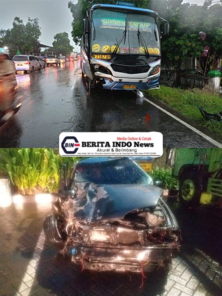 Sidoarjo – Jawa Timur – (BIN) – Kecelakaan beruntun yang melibatkan Bus Sumber Selamat, sebuah mobil sedan, dan satu unit sepeda motor terjadi di Jalan Raya Desa Singkalan, Kecamatan Balongbendo, Sidoarjo, Minggu (4/1/2026) sore.