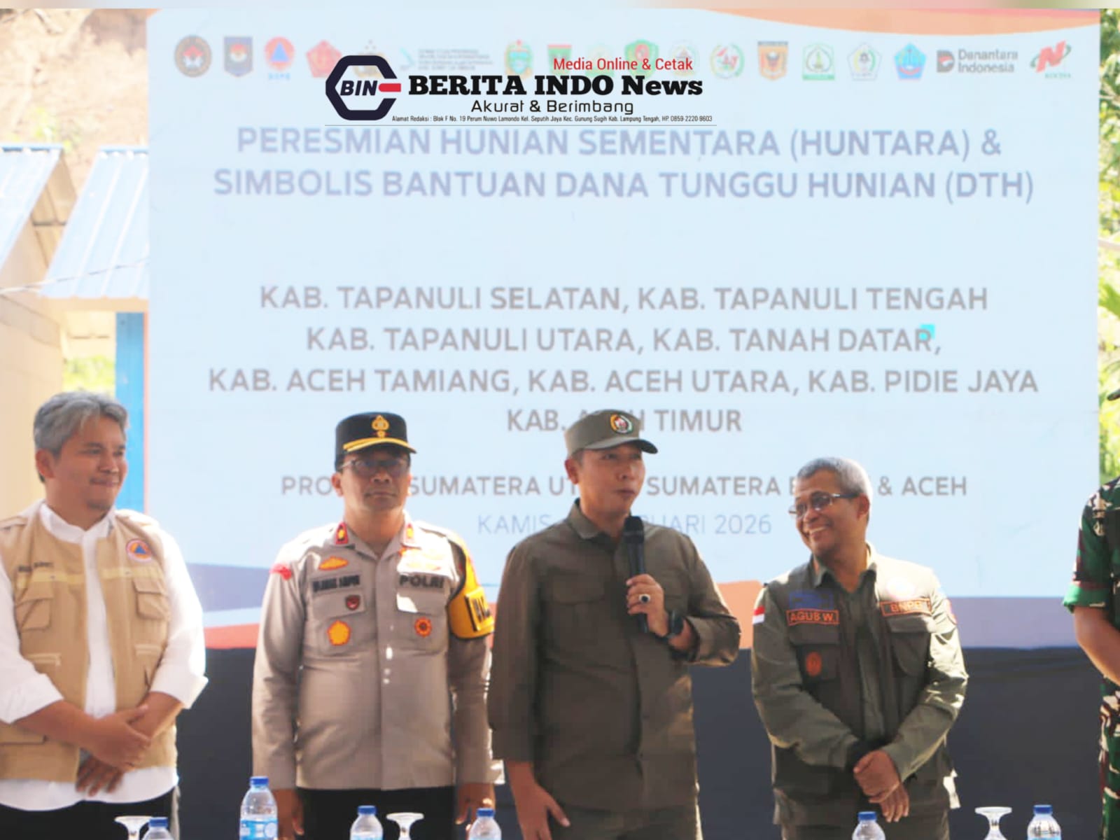 Tapanuli Utara – (BIN) – Menteri Dalam Negeri Republik Indonesia sekaligus Ketua Satuan Tugas (Satgas) Percepatan Rehabilitasi dan Rekonstruksi Pascabencana Sumatera, Tito Karnavian, bersama Kepala Badan Nasional Penanggulangan Bencana (BNPB) Letjen TNI Suharyanto dan Gubernur Sumatera Utara Bobby Nasution meresmikan Hunian Sementara (Huntara) serta menyerahkan bantuan Dana Tunggu Hunian (DTH) secara serentak di tiga provinsi, yakni Sumatera Utara, Sumatera Barat, dan Aceh.