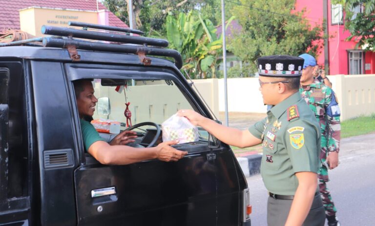 Ogan Komering Ilir – (BIN) – Dalam rangka menyemarakkan bulan suci Ramadan 1447 H, Kodim 0402/OKI-OI menggelar kegiatan pembagian takjil gratis kepada masyarakat yang melintas di depan Makodim 0402/OKI-OI, Jalan Letnan Darna Jambi, Kelurahan Paku, Kecamatan Kayuagung, Kabupaten Ogan Komering Ilir.