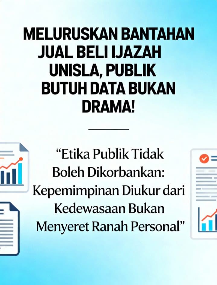 “Kami telah bertemu dan mencapai kesepakatan bahwa Unisla akan segera mengeluarkan klarifikasi resmi dan tertulis untuk menjawab keraguan publik. Harus ada batasan tegas: mana yang merupakan proses akademik murni dan mana yang merupakan residu janji politik kampanye lalu. Dunia pendidikan tidak boleh dijadikan komoditas transaksi politik,” tegas Anes.