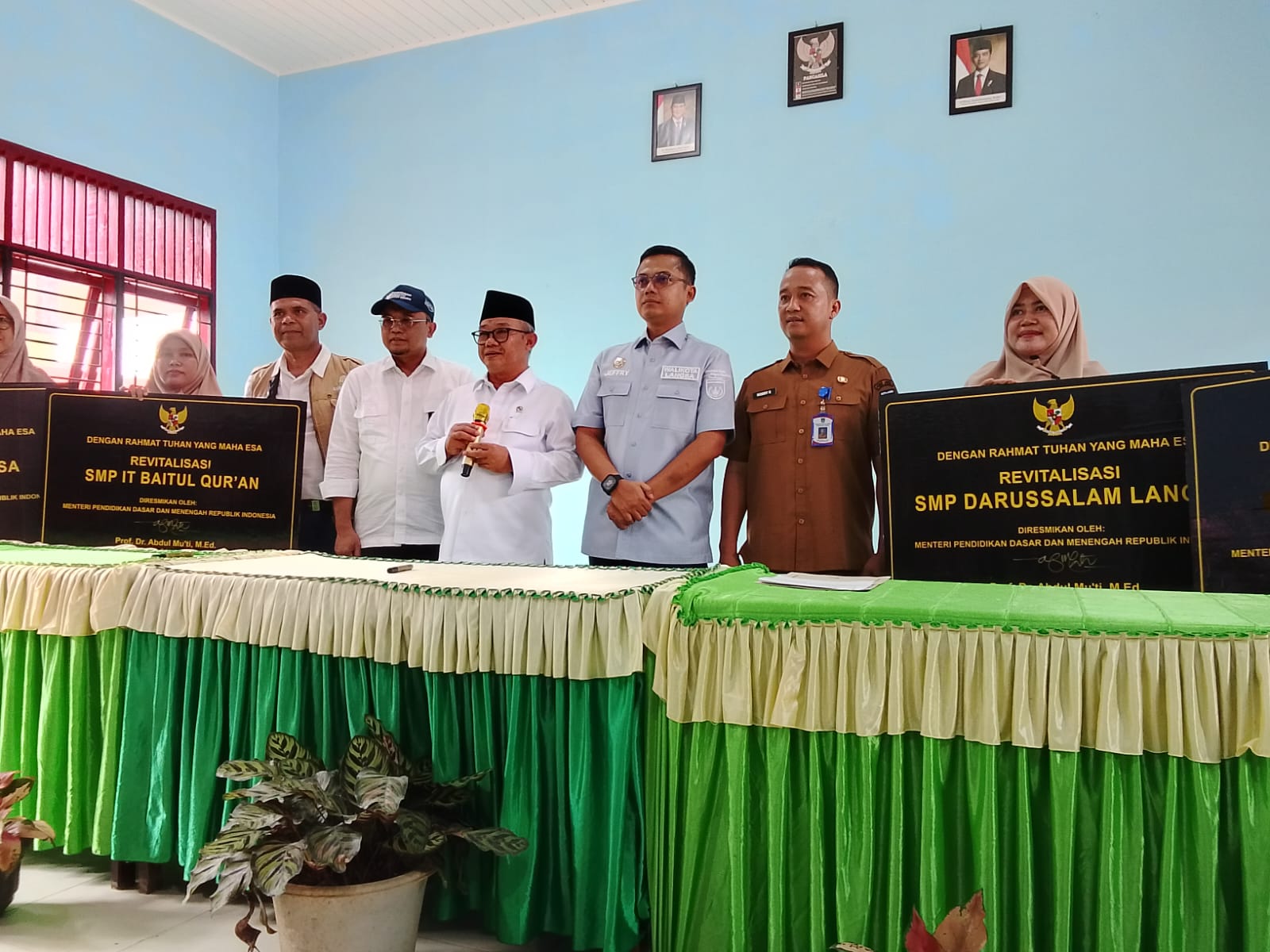 Kedatangan menteri tersebut di sambut oleh Walikota Langsa, Jeffry Sentana S Putra SE di dampingi Pelaksanaan tugas (Plt) Kepala Dinas Pendidikan Kita Langsa, Bobby Edwin, ST. Menteri mendatangi prasasti sekolah yang selesai pembangunan yaitu SMP Swasta Darusallam, SMP swasta IT – Baitul, Qur’an, dan SD Negeri 4 Langsa.