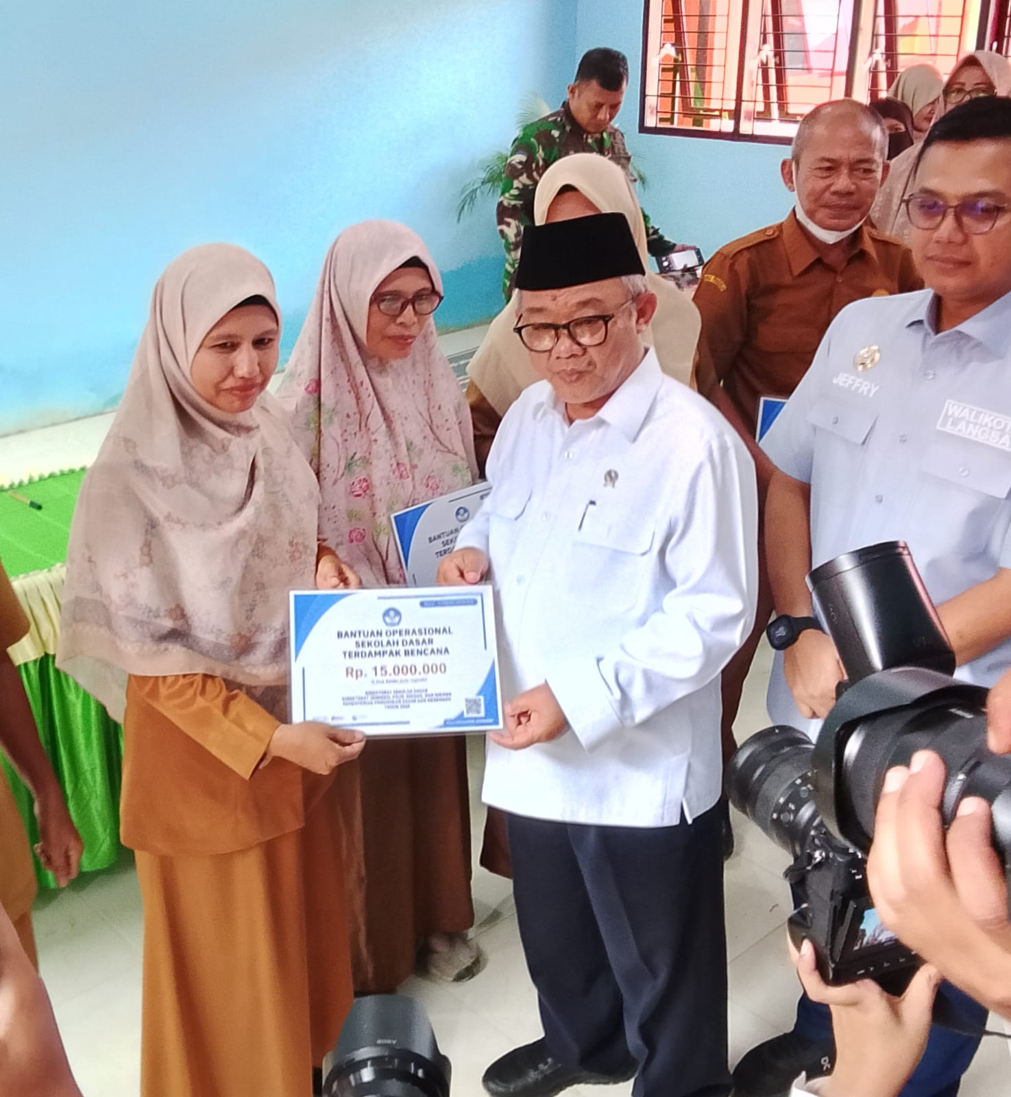 Menteri pendidikan dasar dan menengah juga menyerahkan paket kepada perwakilan siswa Sekolah Dasar, dan korban banjir bagi sekolah yang terkenal dampak. Bantuan operasional sekolah dasar terdampak bencana sebesar yang diterima oleh kepala sebesar Rp. 15.000.000, dan operasional satuan pendidikan terdampak bencana sebesar Rp. 10.000.000 dan Rp. 15.000.000.