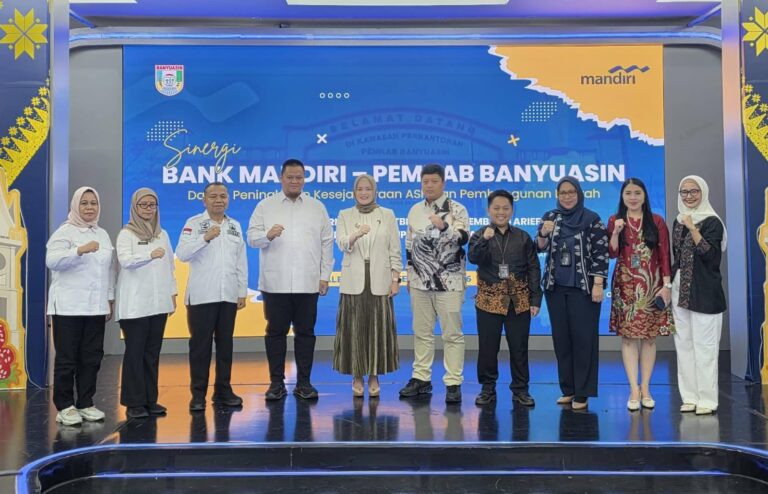 Palembang – (BIN) – Pemerintah Kabupaten Banyuasin bersama Bank Mandiri Area Palembang melakukan Sosialisasi Jasa Layanan Perbankan di Aula Lantai 12 Kantor Bank Mandiri, sebagai upaya memperkuat sinergi dan mendukung pemberdayaan ekonomi daerah.