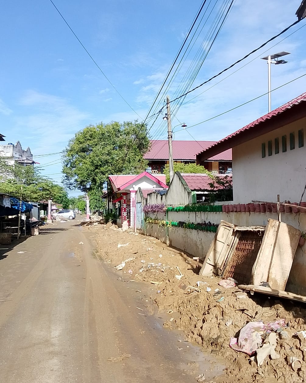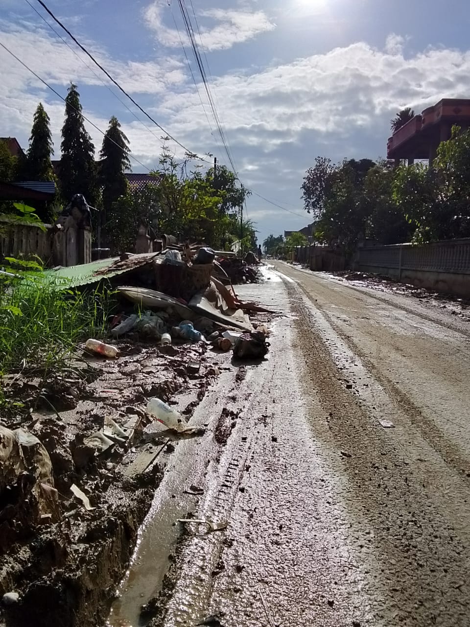 Pantauan media ini, Sabtu, 20 Desember 2025, hampir semua badan jalan di sekitar Gampong Daulat, Kecamatan Langsa Kota, Kota Langsa, Aceh dijumpai tumpukan Lumpur sudah mengeras, tumpukan Lumpur itu tercampur dengan material bahan rumah tangga, dan pecah belah, bisa jadi di dalam tumpukan sampah lumpur ada bekas pecahan kaca atau ada paku bisa membahayakan pengguna jalan.