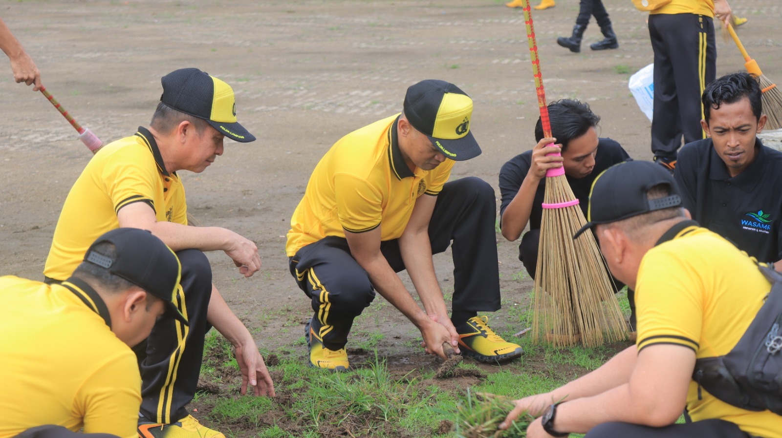 Kegiatan tersebut turut dihadiri langsung oleh Kapolres Metro Polda Lampung AKBP Hangga Utama Darmawan, S.I.K dan Walikota Metro H. Bambang Iman Santoso, S.Sos., M.Pd.I yang bersama-sama memimpin jalannya kerja bakti sebagai bentuk sinergi antara Polri, pemerintah daerah, dan seluruh elemen dalam menjaga kebersihan serta keindahan lingkungan kota.