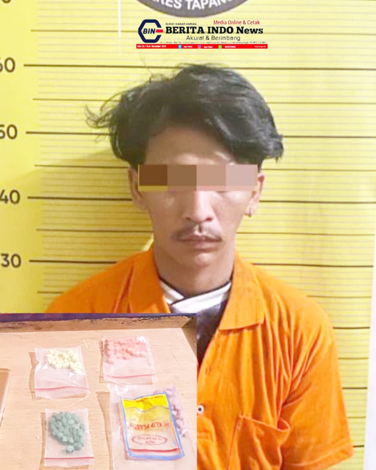 Tepat di tempat kos-kosnya di Jln. Balige, Kelurahan Pasar Siborongborong, APN alias Adi berhasil ditangkap. Saat ditangkap, dari tangannya ditemukan barang bukti narkotika sebanyak 114 butir pil ekstasi yang dibungkus dalam plastik klip.