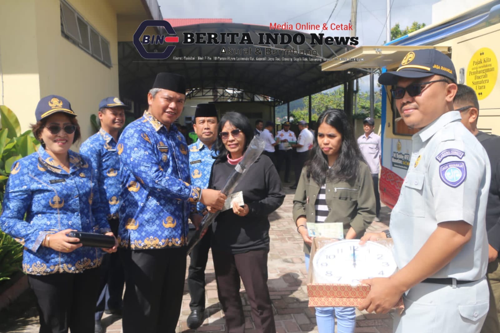 Tapanuli Utara – (BIN) – Wakil Bupati Tapanuli Utara Dr. Deni Parlindungan Lumbantoruan, M. Eng memimpin Apel Pembukaan Operasi Gabungan Penagihan Pajak Kendaraan Bermotor (PKB) dan Opsen PKB Tahun 2026 yang digelar di Kantor Samsat Tarutung, Rabu (18/2/2026). Kegiatan tersebut dihadiri sejumlah pimpinan perangkat daerah, Perwakilan Polri (STNK/TNKB), Dinas Pendapatan Provinsi (Pajak/PKB) dan PT Jasa Raharja (SWDKLLJ) serta jajaran Badan Pendapatan Daerah (Bapenda) Kabupaten Tapanuli Utara.