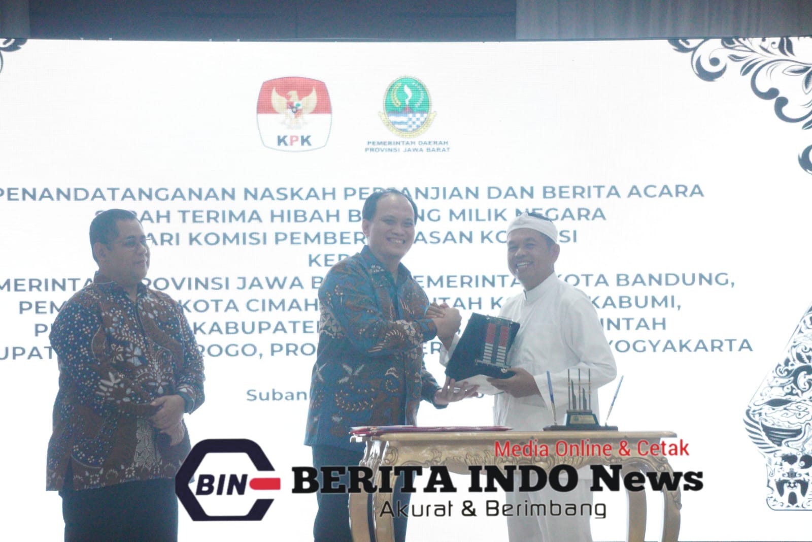 Subang – (BIN) – Kabupaten Subang menjadi tuan rumah pada Penandatanganan Naskah Perjanjian dan Berita Acara Serah Terima Hibah Barang Milik Negara dari Komisi Pemberantasan Korupsi (KPK) kepada sejumlah pemerintah daerah, Rabu (11/2/2026), bertempat di Aula Haji Oman Sahroni, Kantor Pemerintah Daerah Kabupaten Subang.