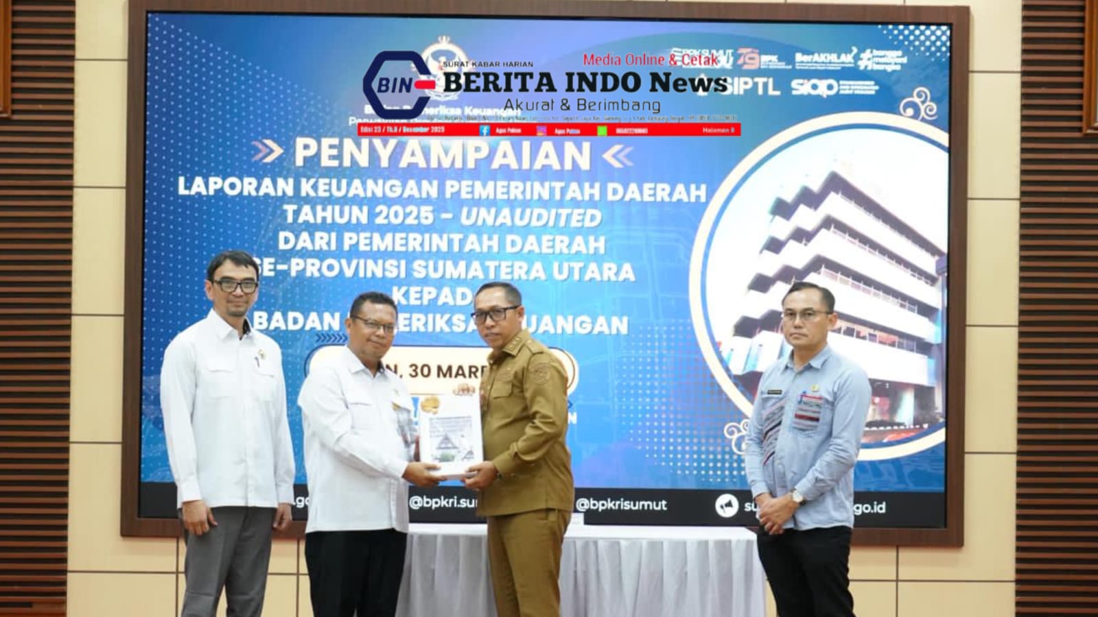 Tapanuli Utara – (BIN) – Pemerintah Kabupaten Tapanuli Utara secara resmi menyerahkan Laporan Keuangan Pemerintah Daerah (LKPD) Tahun Anggaran (TA) 2025 Unaudited kepada Badan Pemeriksa Keuangan (BPK) Republik Indonesia Perwakilan Provinsi Sumatera Utara. Penyerahan dokumen penting tersebut berlangsung di Auditorium Gedung BPK RI Perwakilan Sumut, Medan, Senin (30/3/2026).
