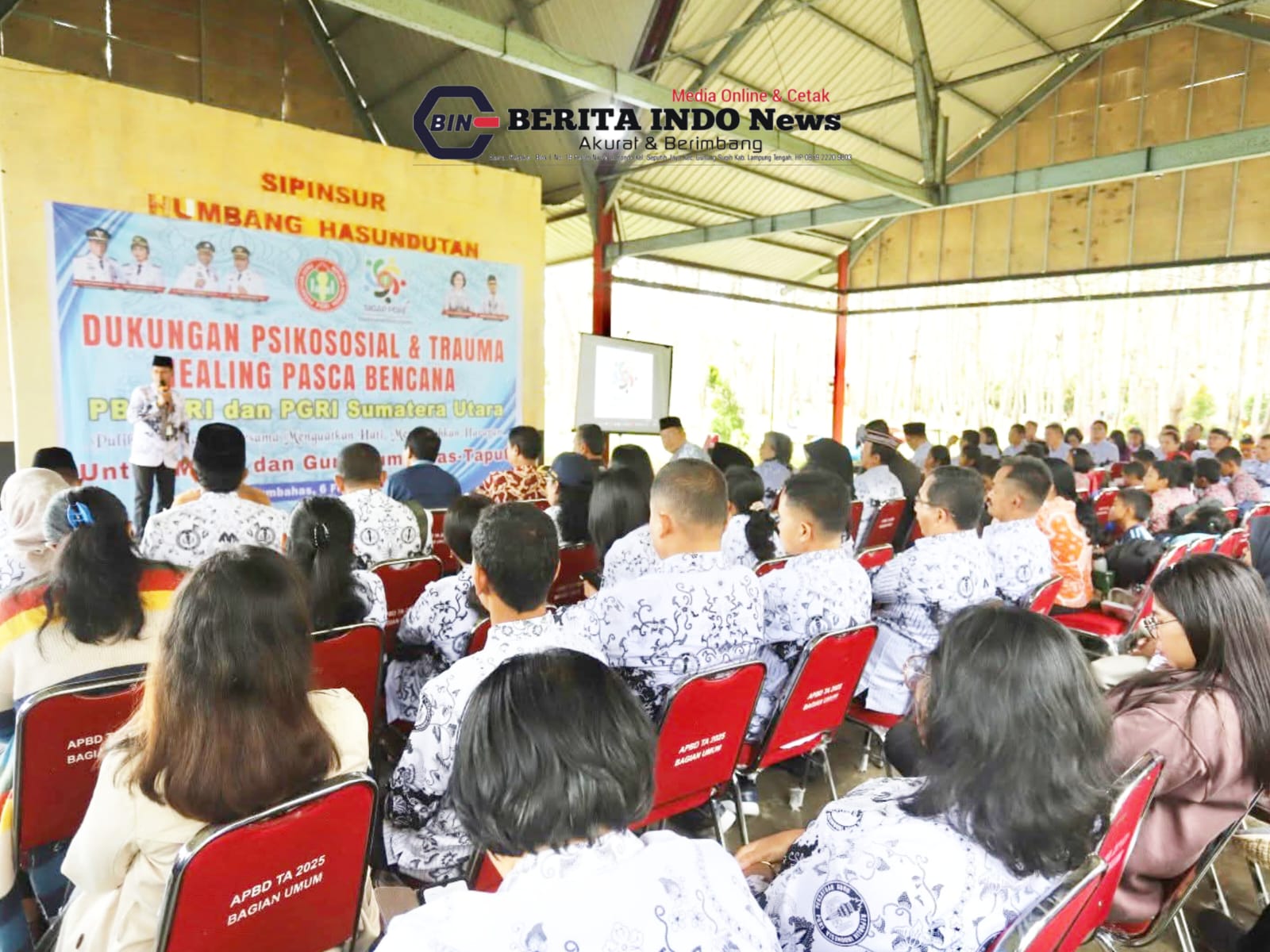 Bupati juga menyampaikan apresiasi dan terima kasih kepada PB PGRI Provinsi Sumatera Utara yang telah memilih Kabupaten Humbang Hasundutan sebagai lokasi pelaksanaan kegiatan trauma healing ini. Ia berharap kegiatan tersebut memberikan manfaat nyata dan menjadi langkah awal pemulihan yang lebih luas bagi masyarakat terdampak bencana.