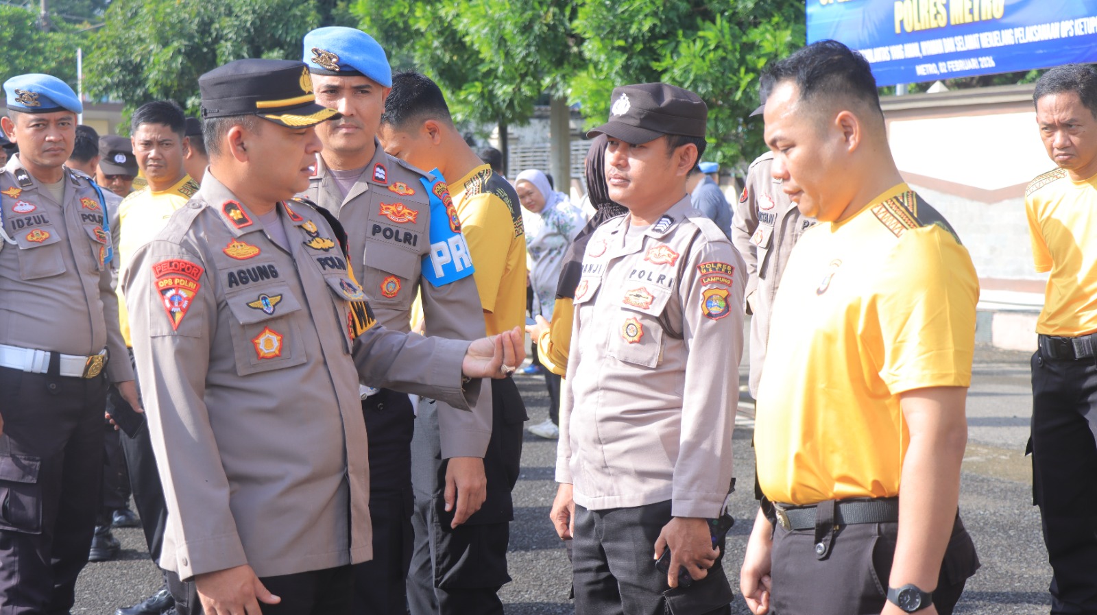 Kota Metro – (BIN) – Wakapolres Metro Polda Lampung Kompol Agung Ferdika., S.H., M.H didampingi para Pejabat Utama (PJU) Polres Metro bersama Sie Propam Polres Metro melaksanakan kegiatan Penegakan Ketertiban dan Disiplin (Gaktibplin) terhadap personel Polres Metro. Kegiatan ini dilaksanakan sebagai langkah preventif guna mencegah terjadinya pelanggaran anggota serta sebagai bentuk pengawasan dan pengendalian (waskat) pimpinan. Selasa pagi (03/02/26).