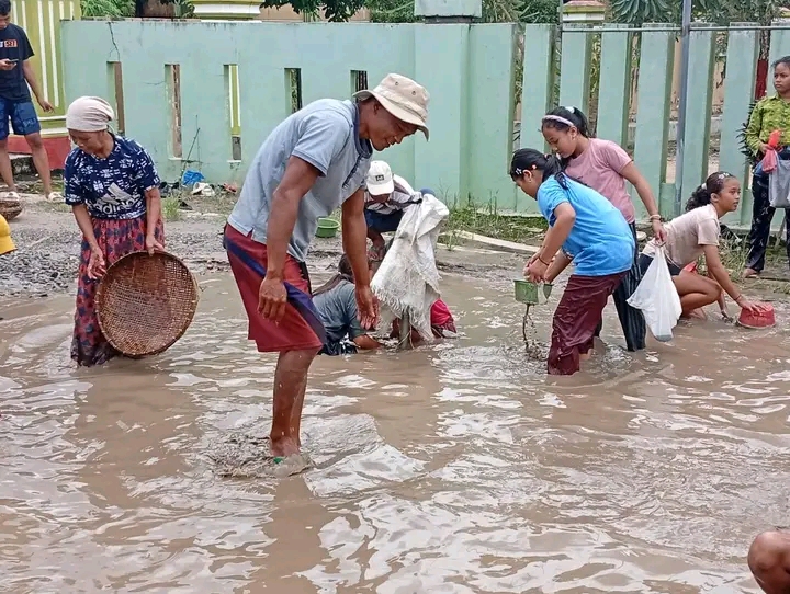 Warga kampung Payung Batu kecamatan pubian gelar aksi tabur lele disejumlah titik jalan rusak yang ada dikampung payung batu